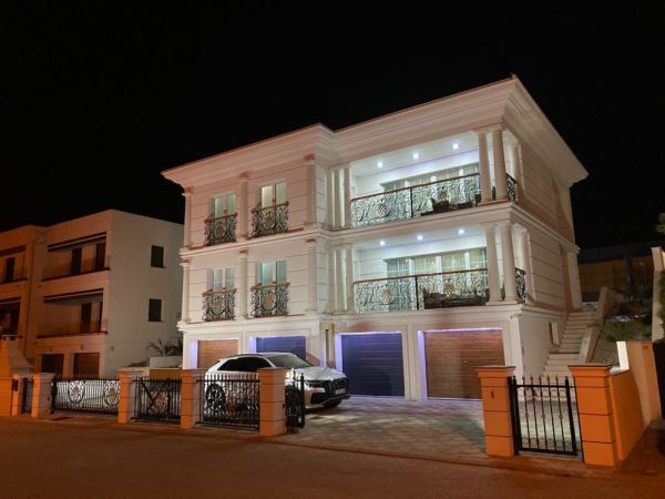 A villa 2020-ban épült, egy 477 m²-es telken, és összesen kb. 375 m² alapterületű, három szinten elosztva, a következő elosztással: