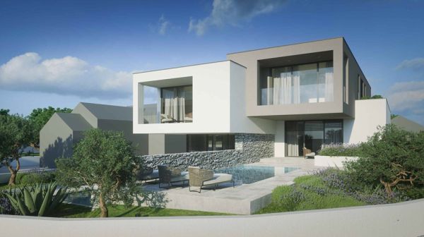 Új ikerházak úszómedencével Vodicében, Dalmáciában