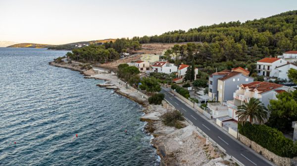 Ezt az apartmanházat 2019-ben teljesen felújították, és egy 1350 m²-es telken található, közvetlenül a tenger mellett, Ciovo szigetén (hídkapcsolattal).