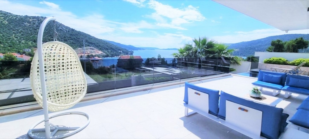 | Felszereltség | Légkondicionálás, padlófűtés, grill, medence, szauna, fitneszterem, bútor, parkoló, taverna, terasz, erkély, nyári konyha, kilátás a tengerre, játszótér. |