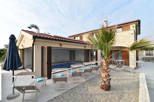 Mediterrán kőházi villa fedett medencével a Krk régióban