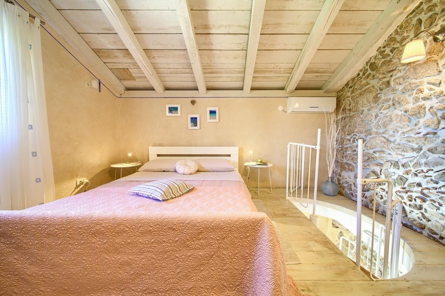 Felső emelet: hálószoba saját fürdőszobával A ház bútorokkal együtt eladó. Csendes helyen, távol a tömegturizmustól. Dobrinj egy festői város Krk szigetén Horvátországban, körülbelül 120 lakossal. A város a sziget északkeleti részén, a környező völgyekre és a tengerre néző dombon található, mindössze néhány kilométerre a szárazföldtől.