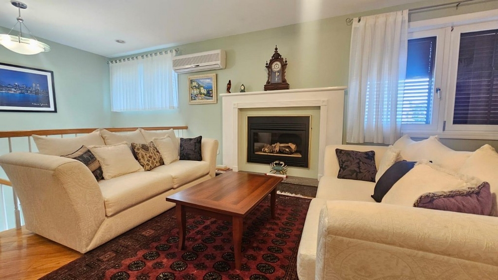 A felső szinten található egy stílusos nappali kandallóval, egy elegánsan berendezett étkező fedett teraszról, egy teljesen felszerelt konyha, valamint két tágas hálószoba saját fürdőszobával és egy másik, kisebb szoba.