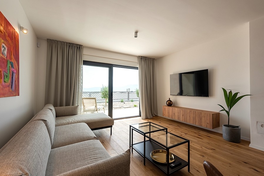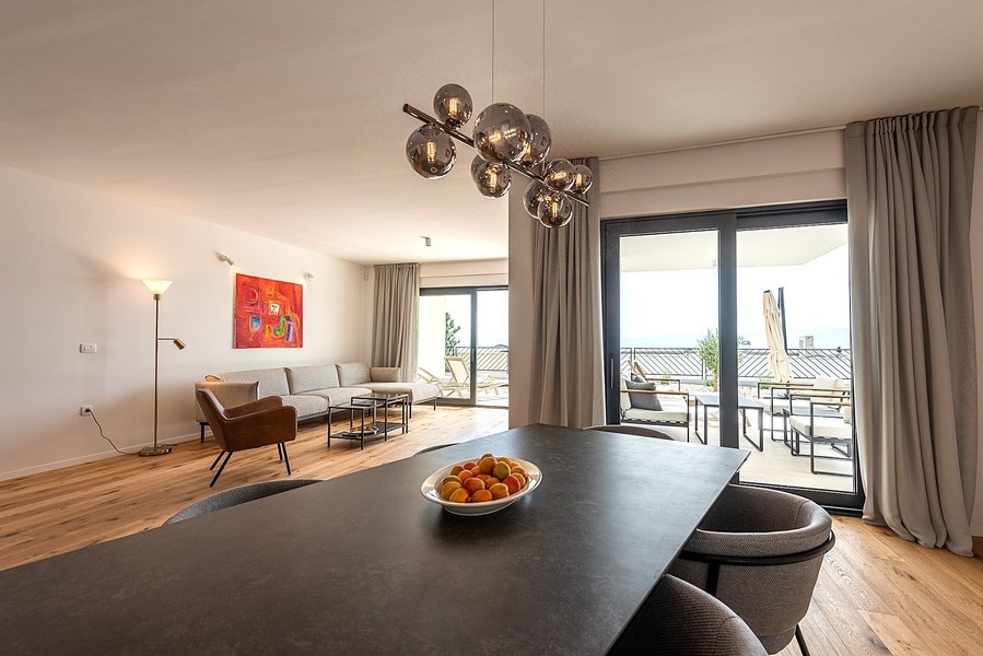 Modern ikerház tengerre néző kilátással és medencével, Kostrena, Rijeka régió, Kvarner-öböl