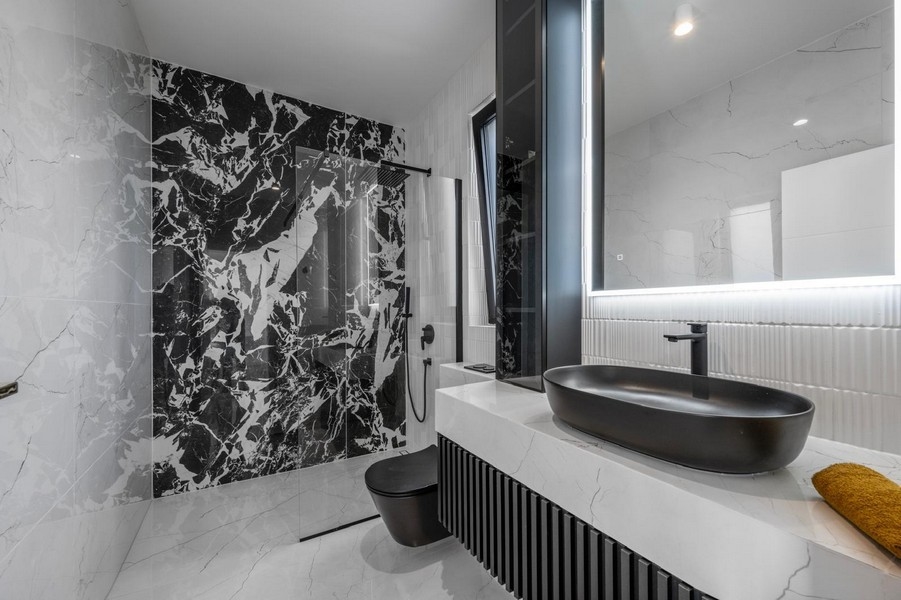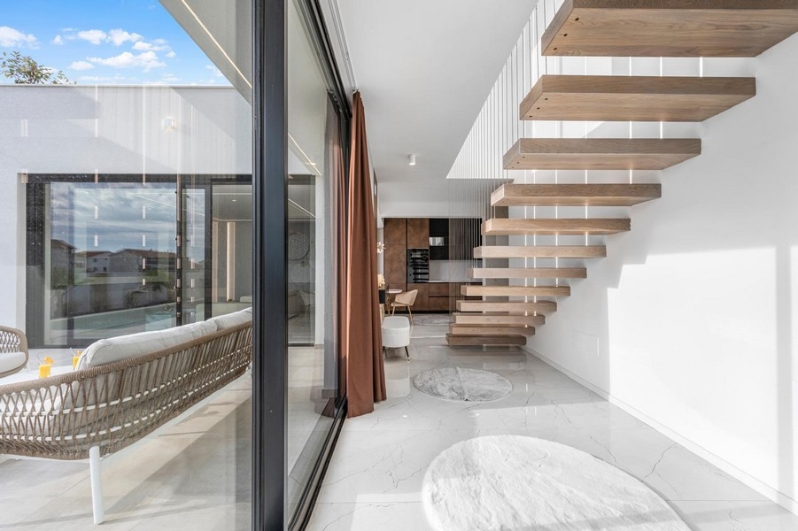 Ez az ingatlan egy modern, új építésű villa úszómedencével és tengerre néző kilátással egy csendes helyen, Tribunjban, Vodice régióban, Dalmáciában.
