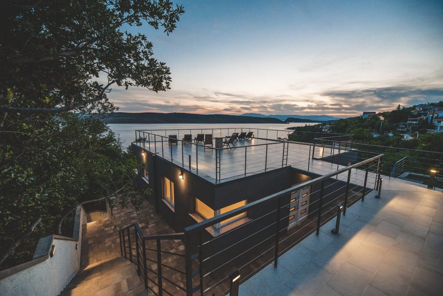 Ez az ingatlan egy modern luxusvilla úszómedencével, tetőterasszal és panorámás kilátással a tengerre Jadranovo csendes városában, Crikvenicától néhány kilométerre északra, a Kvarner-öbölben.