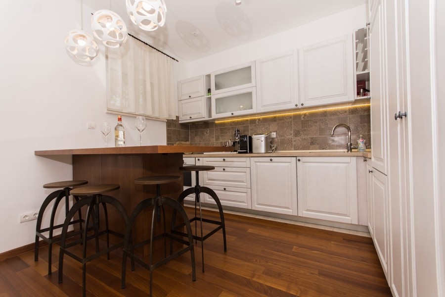 A belső tér ízlésesen kialakított és kiváló minőségű; a teljes berendezést a vételár tartalmazza. Kívül egy tágas terasz pezsgőfürdővel és nyári konyhával, valamint két parkolóhellyel.