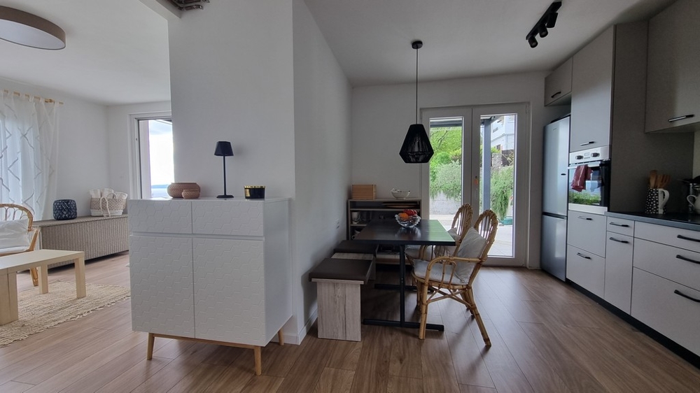 Ez az ingatlan egy 2022-ben felújított ház csendes, panorámás helyen, gyönyörű kilátással a tengerre, egy kis faluban a Plomin régióban, Rabac / Labin közelében, Isztria keleti partján.