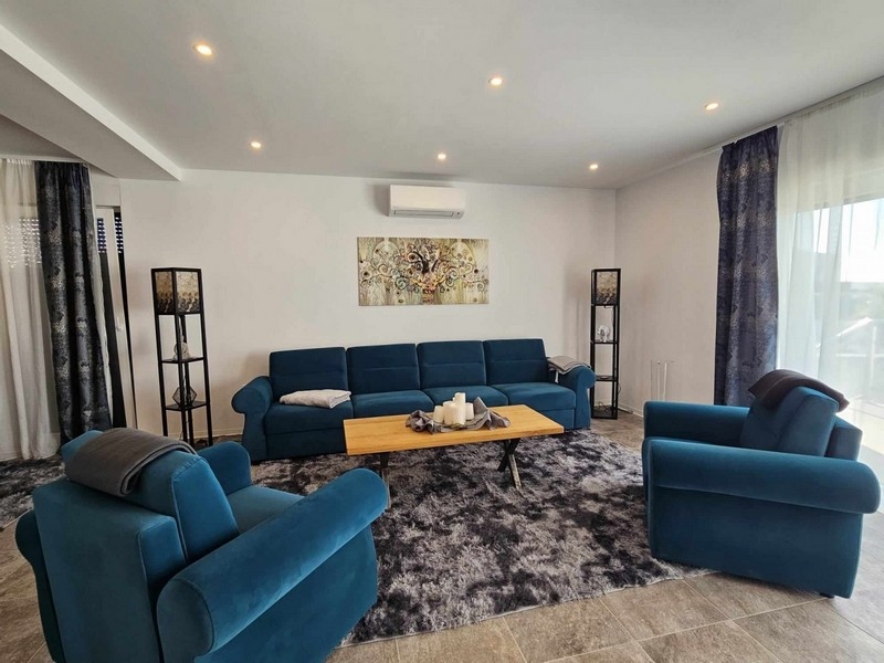Az ingatlan lenyűgöz az előkelő felszereltségével, beleértve az elegáns bútorokat, a padlófűtést, a légkondicionálást, a saját medencét, a grillezőt és a két szabadtéri parkolót.