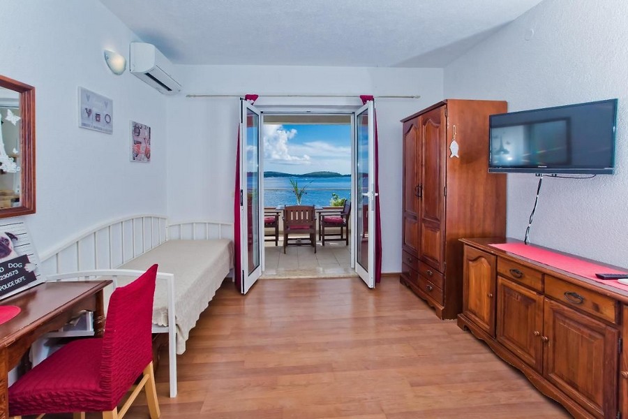 Ez az ingatlan egy többlakásos ház lenyűgöző helyen, közvetlenül a tengerparton (nincs út a strand és a ház között) Hvarban, az azonos nevű szigeten, rendszeres kompjárattal a szárazföldre.