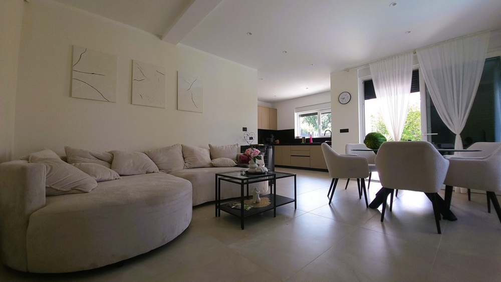 A 2022-ben épült, körülbelül 450 m²-es telken található ház körülbelül 175 m² lakóteret kínál két szinten, a következő elrendezéssel: