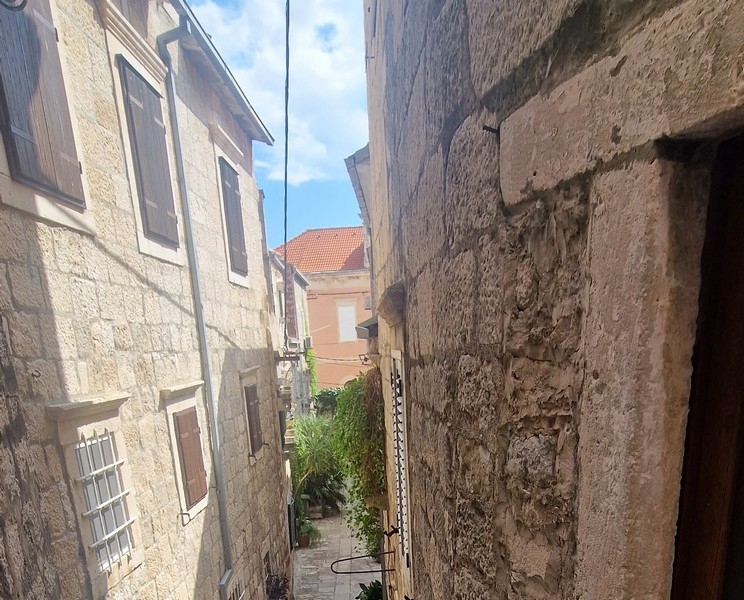 Ez az ingatlan egy hagyományos dalmát kőből épült sorház Orebić városközpontjában, a Pelješac-félszigeten.