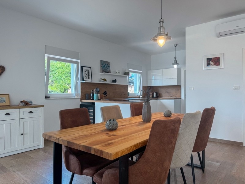 Ez az ingatlan egy modern villa úszómedencével és szép tengeri kilátással, csendes környezetben, Labin közelében, Isztria keleti részén.