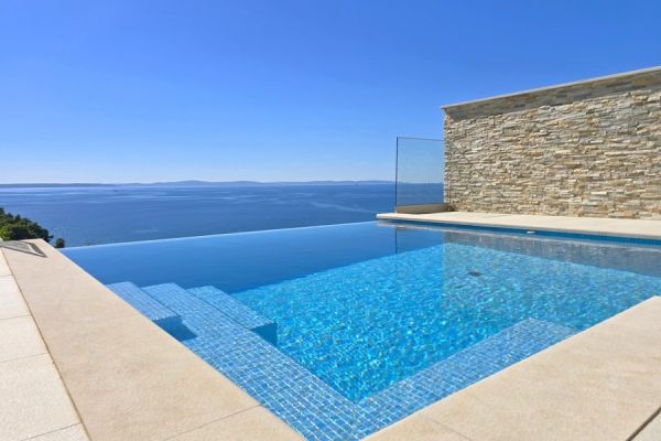 Split régió: Modern villa végtelenített medencével és kilátással a tengerre