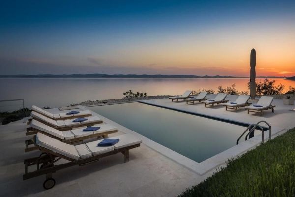 Ez az ajánlat egy kivételes ingatlan két villával (két ikerházzal) és kiterjedt földterülettel egy nem teljesen lakott és magányos szigeten Zadar régióban, Dalmáciában. A sziget csak privát közlekedéssel érhető el, és magas szintű magánéletet kínál, valamint gyönyörű kilátást nyújt a tengerre és a környező szigetekre. A két villa 2013-ban készült el, és körülbelül 47 500 m²-es telken található. Az épületek teljes lakóterülete kb. 280 m².