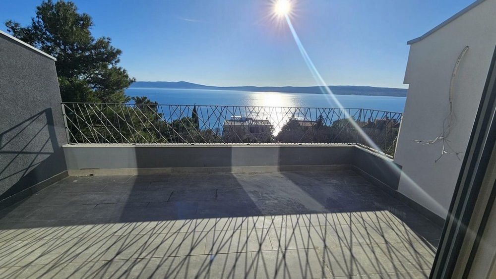 A körülbelül 10 m²-es teraszról gyönyörű kilátás nyílik a tengerre és a tengerpartra.