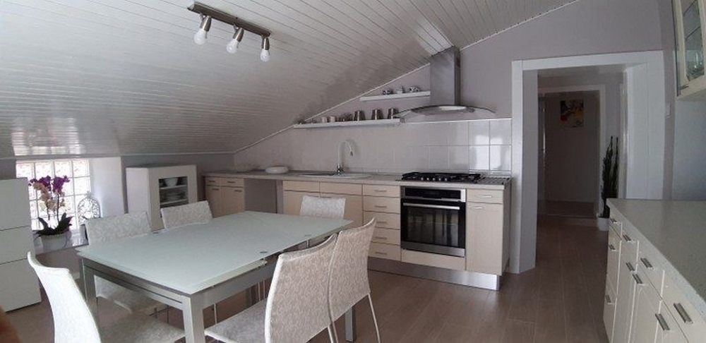 Ez a tetőtéri apartman az isztriai Pulában található, és körülbelül 107 m²-es lakóterülettel rendelkezik. A kertben található egy kisebb, 24 m²-es lakás is.