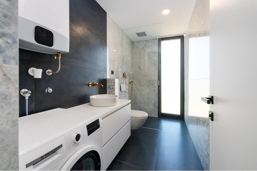 A csúcspont a közel 90 m²-es tetőterasz, amelyen egy körülbelül 18 m²-es medence is található. Innen gyönyörű kilátás nyílik a tengerre.
