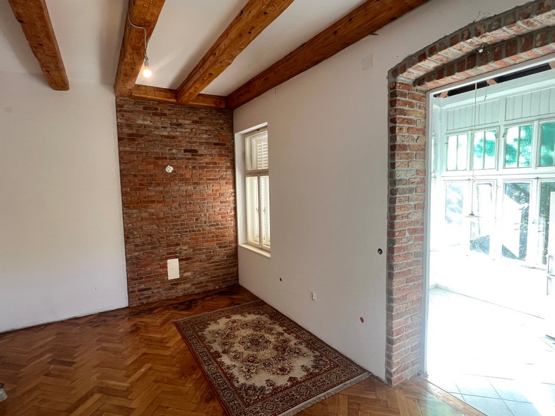 A lakás felújításra szorul, és egy szintén felújításra szoruló, 1902-ből származó történelmi villa második emeletén/tetőterén található.