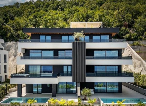 Ez az ajánlat tengerre néző, új építésű luxuslakásokra vonatkozik Abbáziában, a Kvarner-öbölben. A földszinti apartmanokhoz saját medence tartozik. Jelenleg a következő lakások eladók: