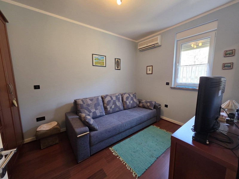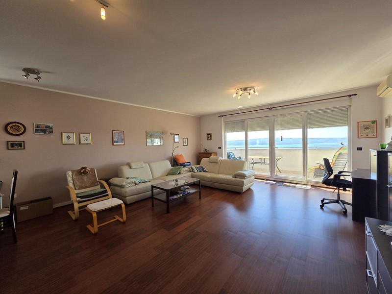 Ez a tágas lakóegység egy 2008-ban épült lakóépület második emeletén (legfelső emelet) található és kb. 114 m², két hálószobával, fürdőszobával, külön WC-vel, nappalival, étkezős konyhával, erkéllyel és terasszal, ahonnan lenyűgöző kilátás nyílik a tengerre.