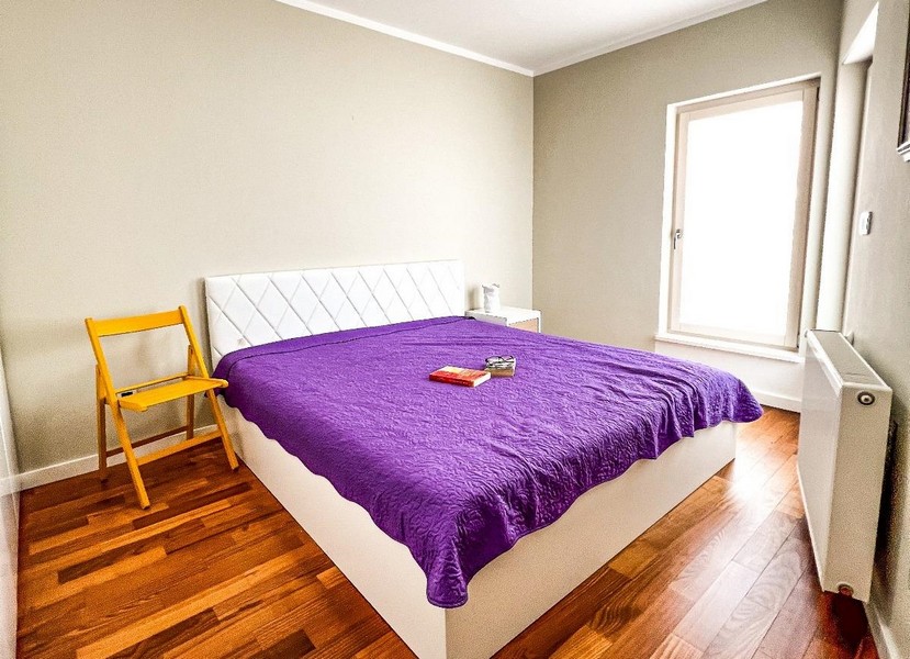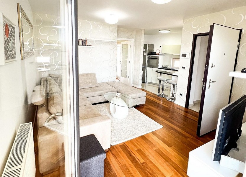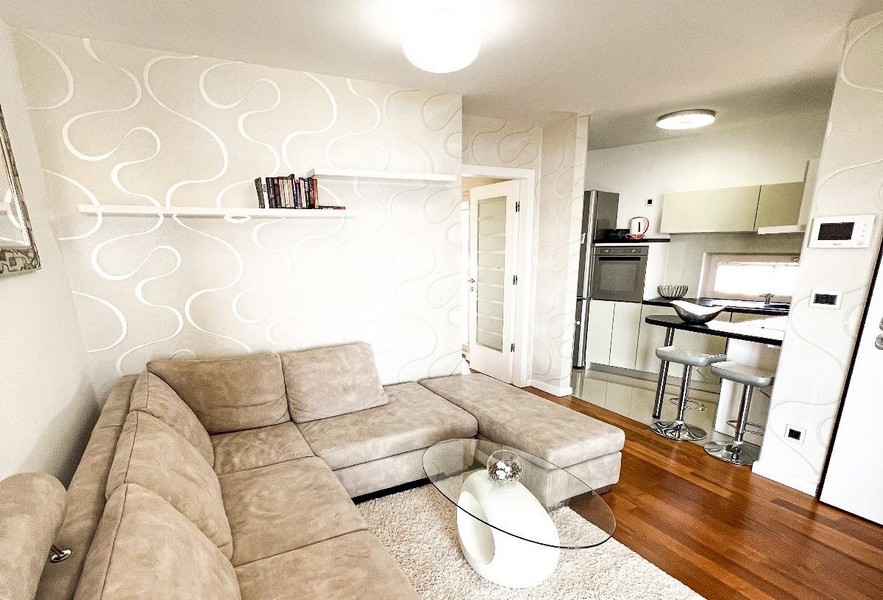 Az apartman egy 2014-ben épült lakóépület első emeletén található, körülbelül 61 m² alapterületű, két hálószobával, fürdőszobával, nappali konyhával és étkezővel, egy kis erkéllyel és egy nagyobb erkéllyel, ahonnan gyönyörű kilátás nyílik a tengerre.