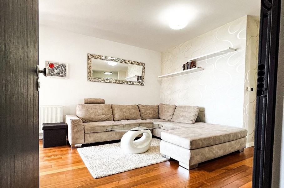 A lakás igényesen berendezett, klíma, villany van. Redőnyök, parketta (diófa) és minőségi kerámia a fürdőszobában, valamint két parkolóhely kívül.