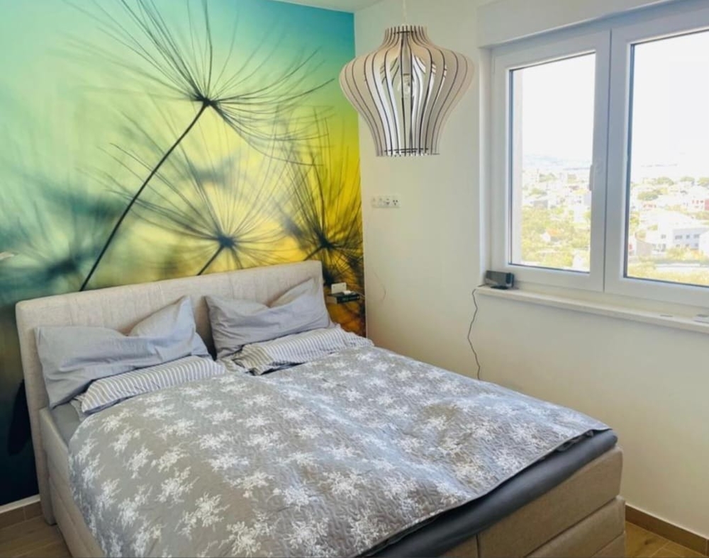 Ez az ingatlan egy modern apartman gyönyörű kilátással a tengerre, vonzó helyen Slatine városában, Ciovo szigetén, hídkapcsolattal a szárazfölddel.