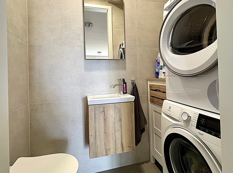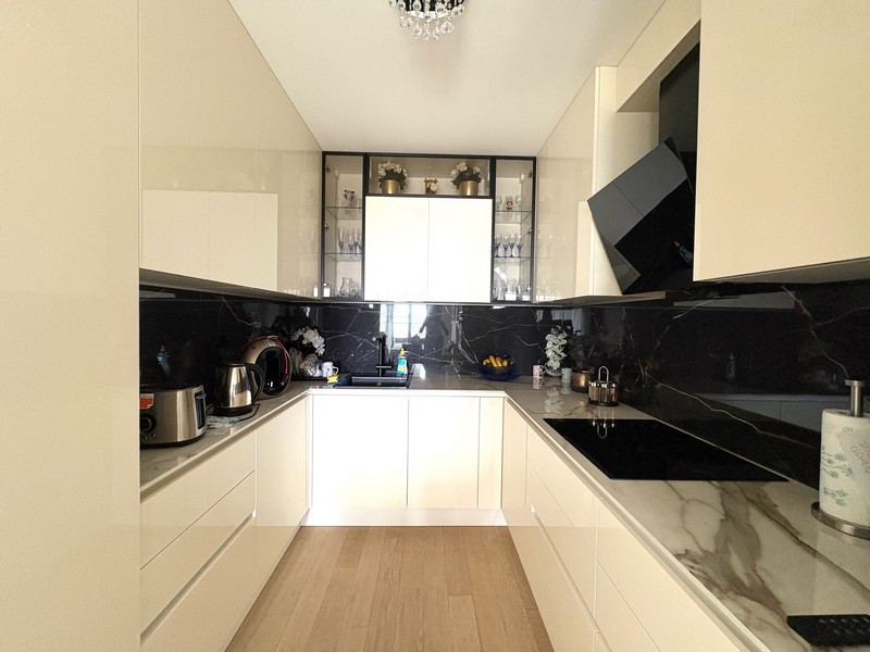 A lakáshoz tartozik egy kb. 105 m². Igényesen felszerelt, és többek között bútorzattal, légkondicionálóval, padlófűtéssel (a fürdőszobákban), 105 m²-es kerttel és a garázsban parkolóhellyel rendelkezik.