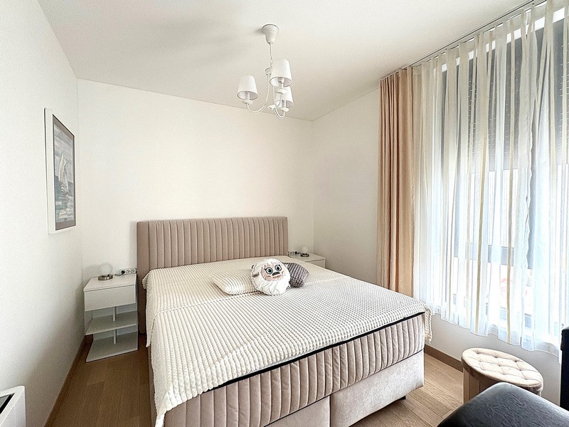 A körülbelül 60 m²-es lakótér két hálószobára, fürdőszobára, WC-re, nappali konyhával és étkezővel, valamint tengerre néző fedett terasszal rendelkezik.