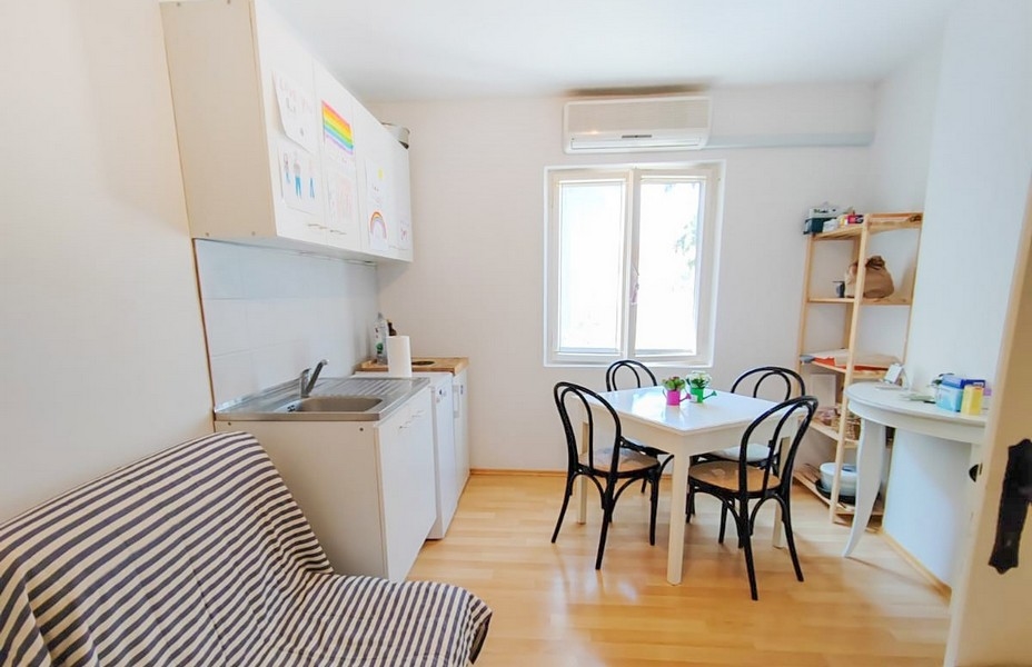 2. apartman, kb. 33 m²: egy hálószoba, egy fürdőszoba, nappali konyhával és háztartási helyiséggel. Külön megvásárolható 220 000 euróért.