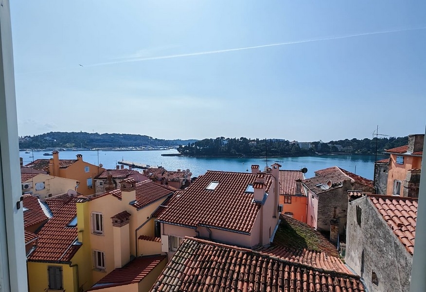 Az apartmanból gyönyörű kilátás nyílik Rovinj háztetőire, a tengerre és a festői tengerpartra.