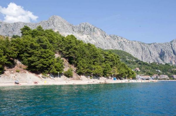 Közvetlenül az ingatlan előtt található a makarskai riviéra egyik legszebb kavicsos strandja.